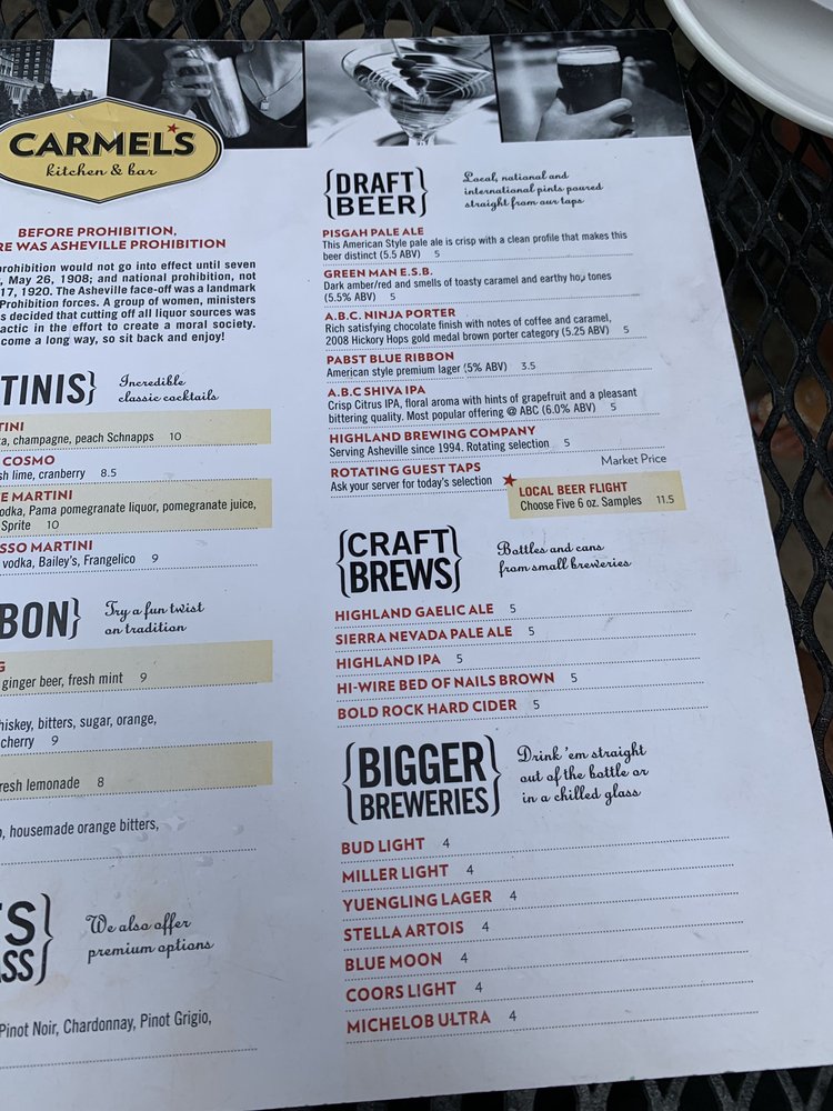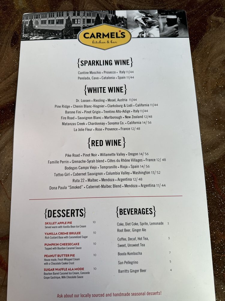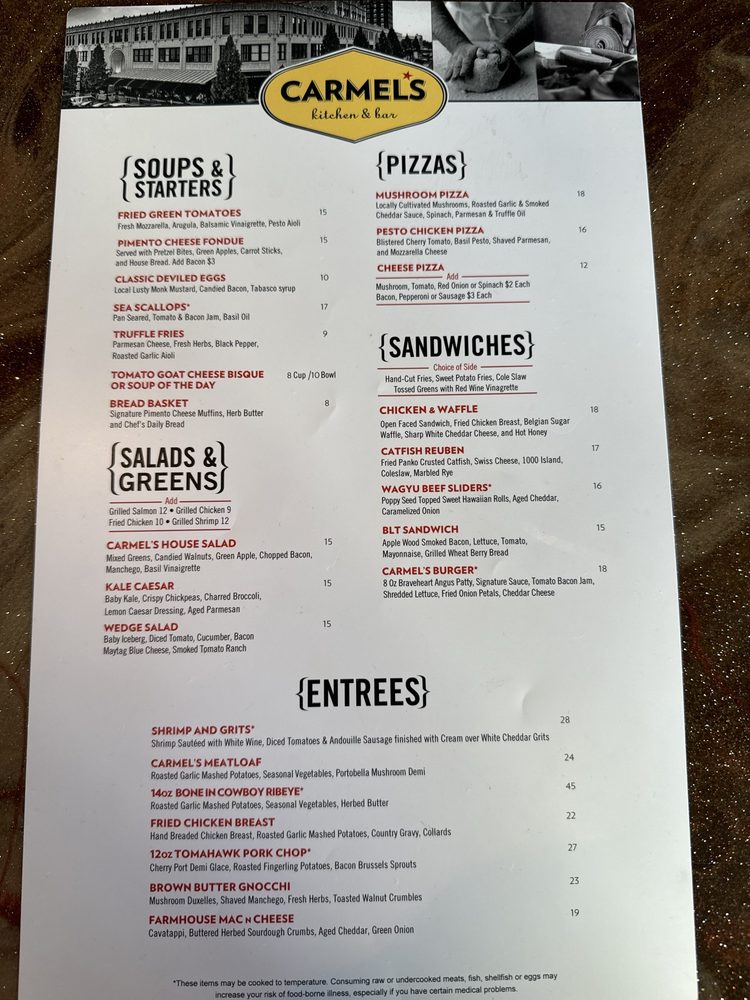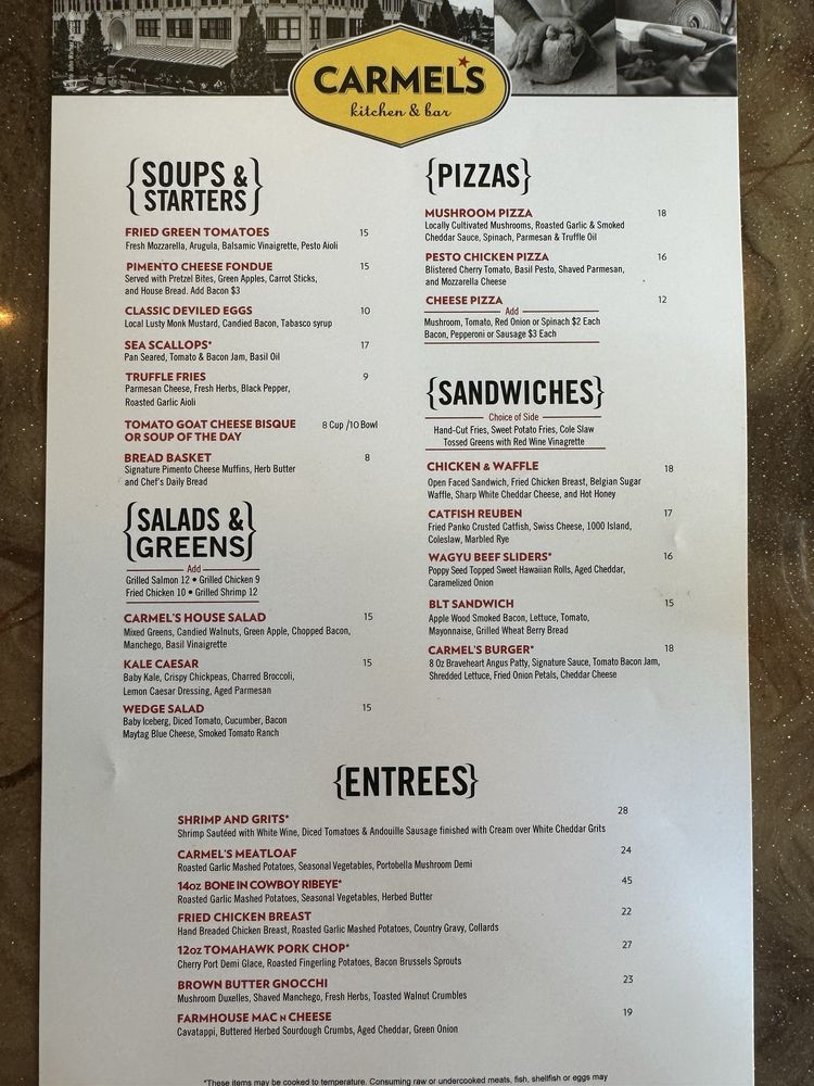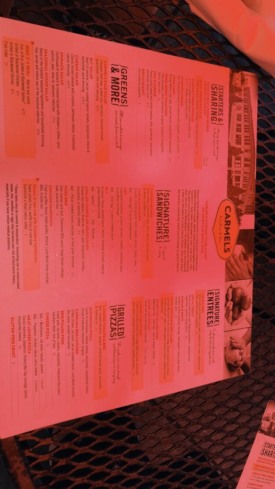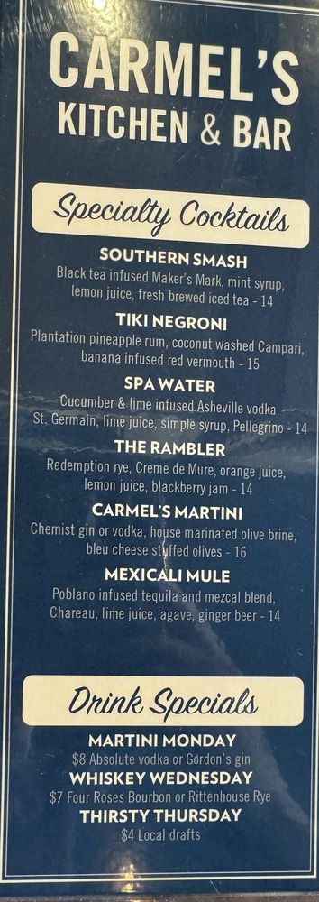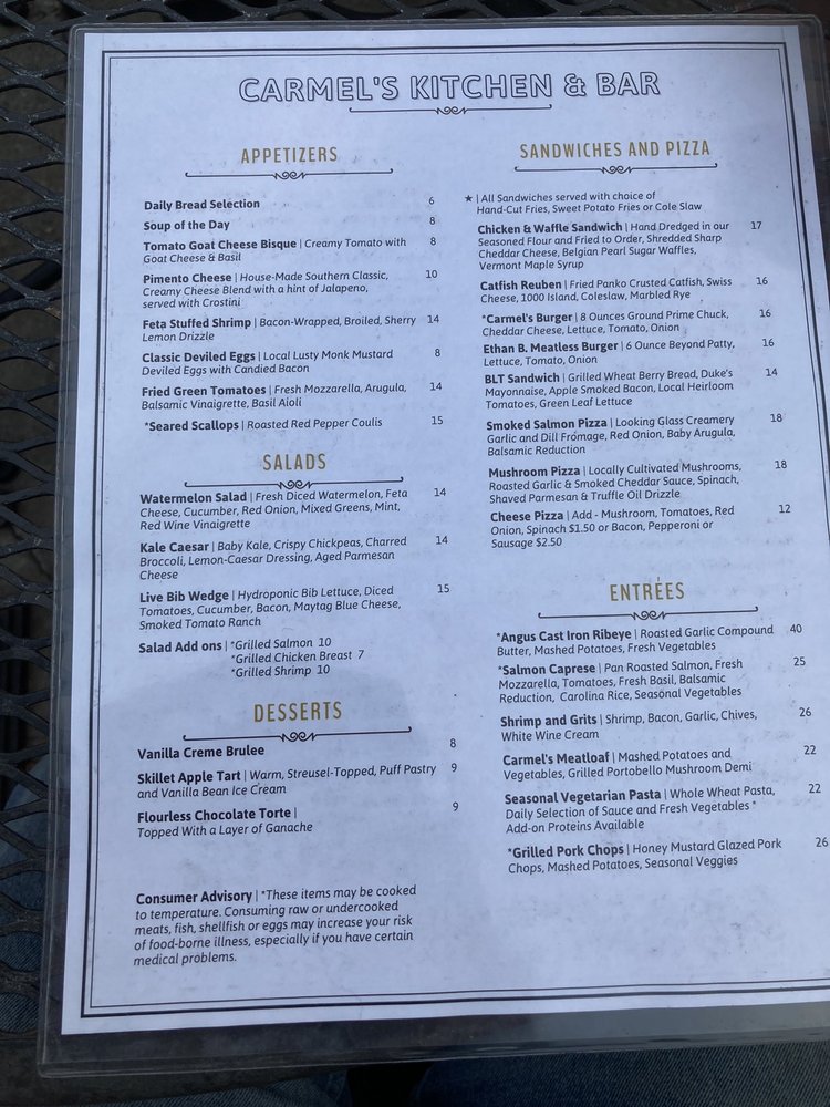 Carmel's Restaurant and Bar Menu