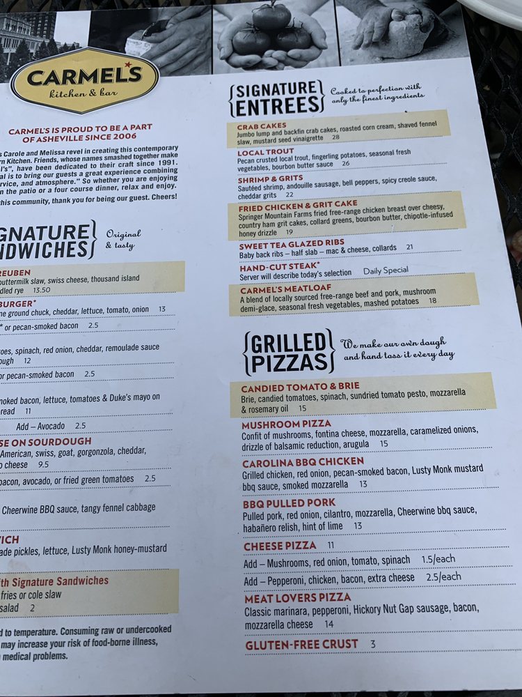 Carmel's Restaurant and Bar, located in Asheville, NC, offers a diverse menu with a focus on New American cuisine. The restaurant provides a range of amenities including takeout, delivery, outdoor seating, and a full bar. Customer reviews highlight the delicious pretzel bites, grilled cheese with tomato bisque, waffle chicken sandwich, chicken and waffles, and brownie dessert with ice cream. The staff at Carmel's has been praised for their warmth, professionalism, and resilience, especially during challenging times. With a cozy atmosphere and friendly service, this restaurant is a must-visit for a casual lunch or dinner. The variety of delicious dishes, along with accommodating staff, make Carmel's a standout dining experience in Asheville.
